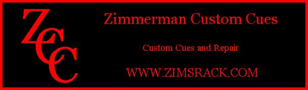 | Zimmerman Custom Cues is a division of Zim's Rack Billiard Promotions-- www.zimsrack.com |